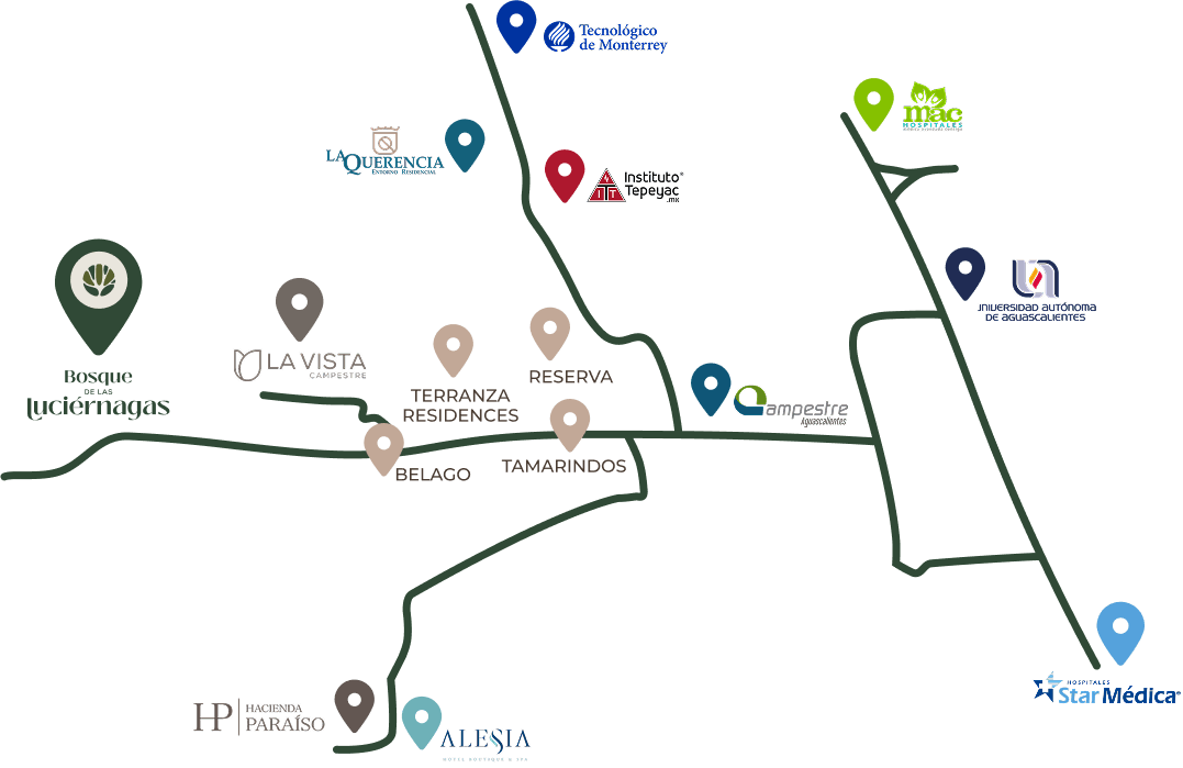 En un entorno natural privilegiado, de arboledas magníficas que se alzan al borde del Río Morcinique, se levanta Bosque de las Luciérnagas, el residencial de más alto nivel en la ciudad y con amenidades gran clase. El nuevo proyecto que estamos creando en Grupo Terranza. Los mejores terrenos en Aguascalientes. El diseño de Bosque de las Luciérnagas, une en su concepto creativo la fusión visual de la rica cultura mexicana con las nuevas tendencias arquitectónicas.